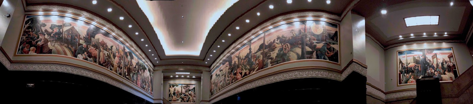 Indiana has a set of Thomas Hart Benton murals, too! An originally 230 foot tableau of the 'Social History of Indiana' for the 1933 Chicago International Exposition is now spread over three buildings at IU, most of them in the 1941 auditorium whose vestibule was designed to house them. Hard to snap!Friday, May 18, 2018