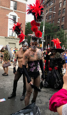 time to take in the parade, though, or even to look up and see who's passing by. So I was happy to notice the corsetted Dia de los Muertos dandies from the Mexican group (right), and delighted to take in the fabulous procession of Queer Saints Resist! (above) celebrating Saints Keith Haring, Bayard Rustin, Harry Hay, Oscar Wilde, Frida Kahlo, Audre Lorde, Alan Turing, Bowie, Jane Addams, Billy Tipton, Eve Sedgwick, Harvey Milk, Michael Callen, Langston Hughes, Marsha Johnson, Robert Spike, Christine Jorgensen, James Baldwin, and Hibiscus. Grace abounding!Saturday, June 23, 2018