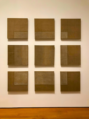 For my last day in New York for a while (I fly out tomorrow for California, then on to China, returning August 11th) I went to MoMA to see the Adrian Piper exhibition. It's huge, and well worth the time it takes to engage it. Piper's a philosopher as well as an artist and each piece is a think piece, from early conceptual pieces like Nine-Part Floating Square (1967), above (can you see the pencil lines on the wall between the mounted squares, completing the grid?), to incisive work in many media engaging the perception and construction of identity, especially racial constructions. When I got out, a few hours later, the heat wave promising to engulf most of the country this weekend had started, so I basked in the spray of this fountain on Ave of the Americas.