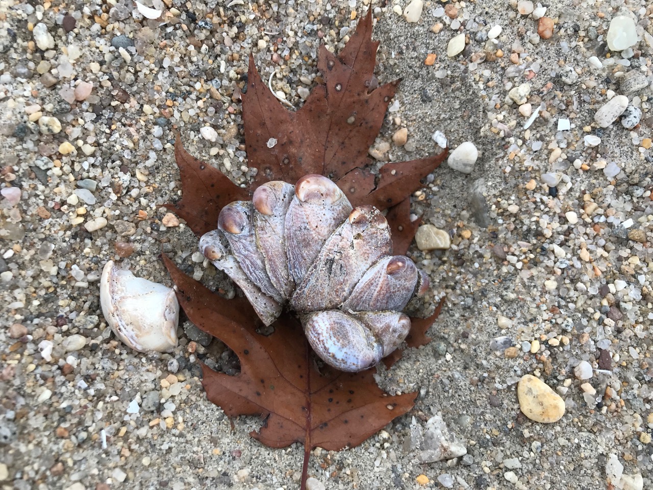 To get off our island from time to time, we've been renting a car and driving to inviting-looking mainland B&Bs we scope out online. This weekend we went to Connecticut. This completes an eight-state sweep which has taken us to New Jersey, Delaware, Maryland, Pennsylvania, Massachusetts and Vermont - and of course Upstate NY and Long Island. (The shells were found on Hammonasset Beach on Long Island Sound.) Friday, November 16, 2018